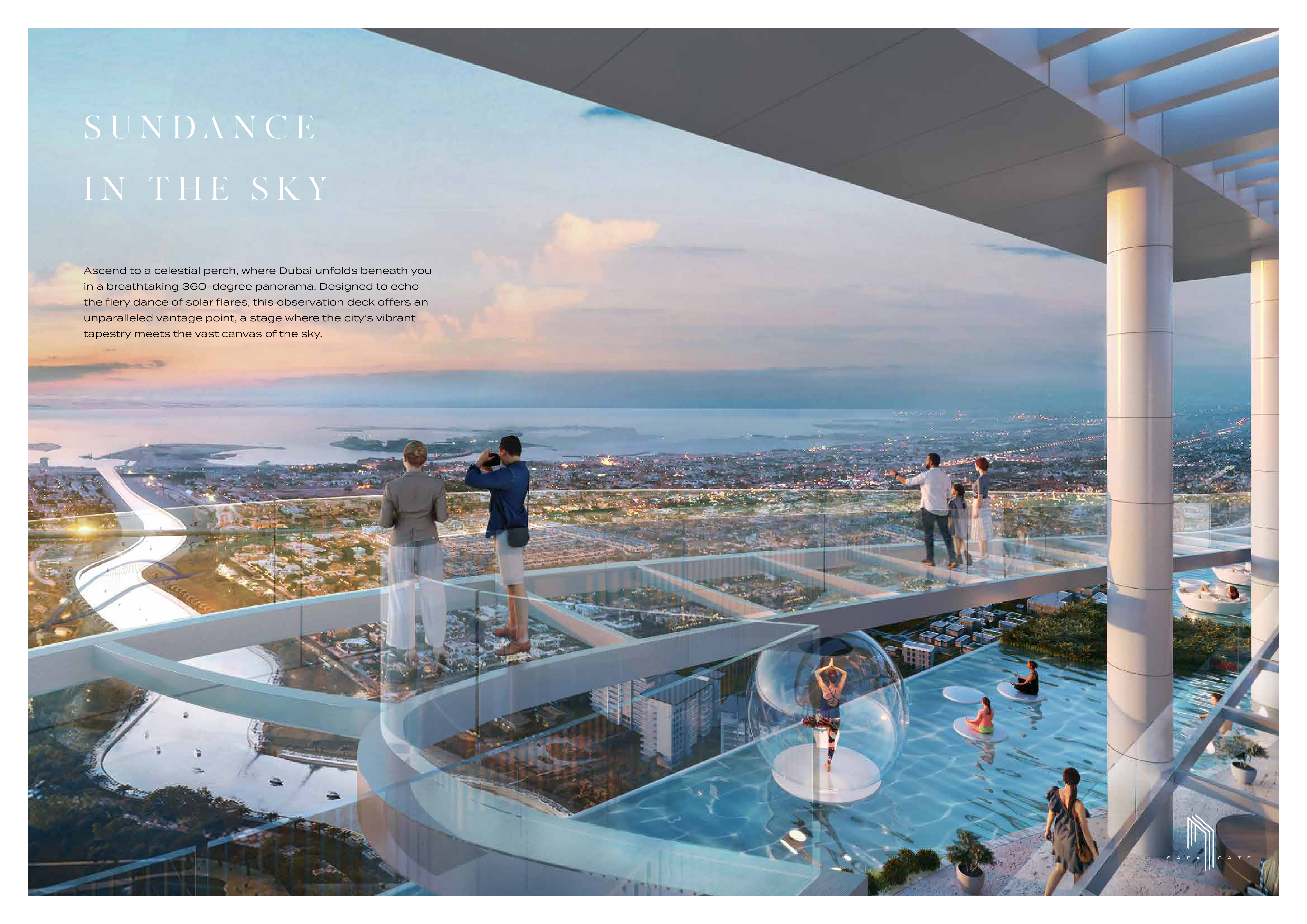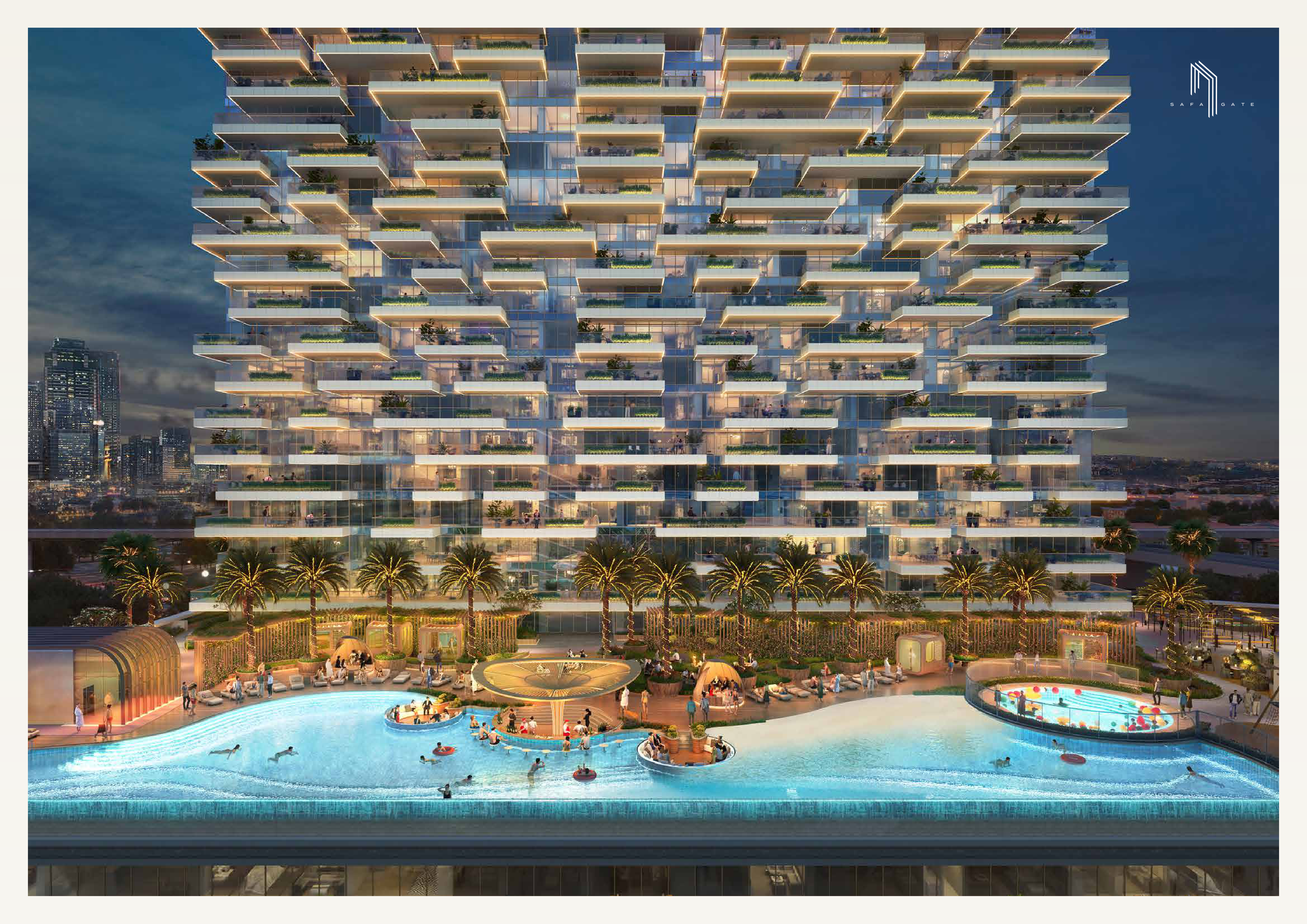 At Safa Gate every detail is designed to enhance your lifestyle. Innovative sky gardens and panoramic viewing decks create spaces that dissolve boundaries, offering ever-changing vistas of Dubai’s remarkable skyline. A private cigar lounge sets the stage for refined evenings, while the Aurora Pool dazzles with a mesmerising play of colours, promising moments of tranquil indulgence. Fitness and wellness are reimagined at Safa Gate.