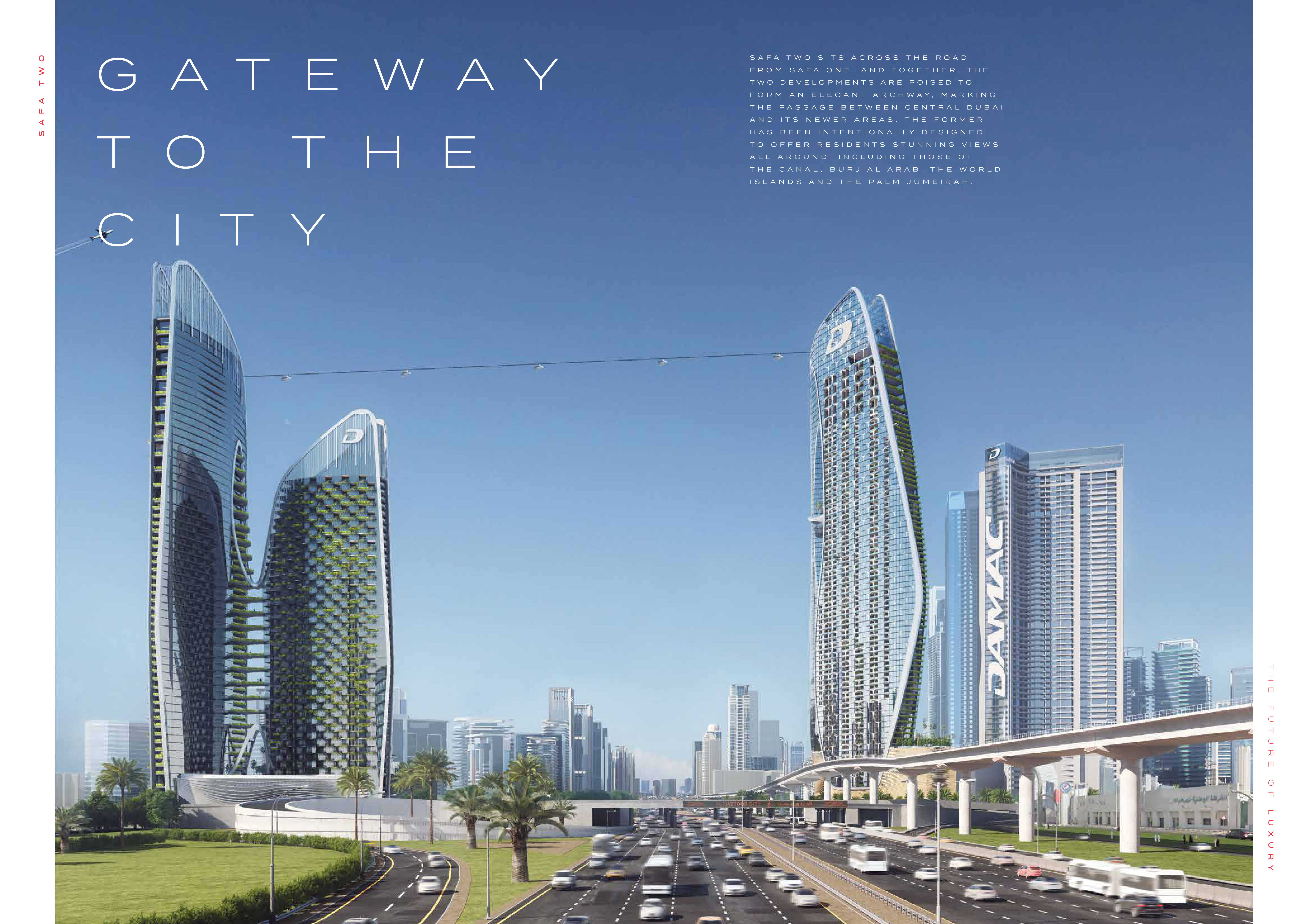 Safa Two by DAMAC redefines the skyline of Dubai with its bold architectural design and unprecedented luxury. Exclusively branded by De Grisogono of Switzerland, the tower draws inspiration from the elegance of precious rubies and the transformative power of light and colour. Its stunning façade and futuristic design create a glowing landmark on Sheikh Zayed Road, offering breathtaking views of the Dubai Canal, Burj Al Arab, Palm Jumeirah, and beyond